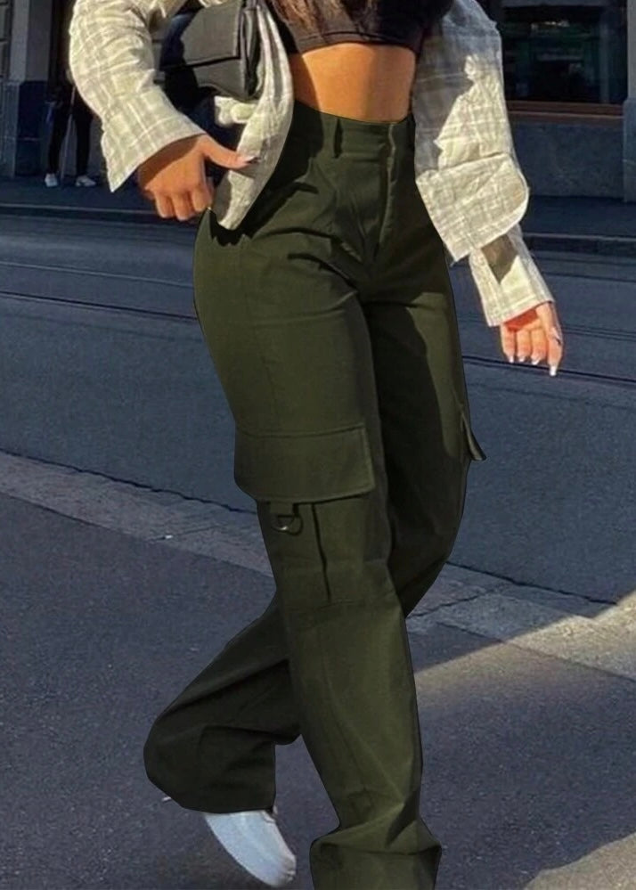 Utility meets effortless style in the Good Aura Cargo Pants. These high-waisted cargo pants come in a versatile olive green shade that pairs perfectly with any top in your wardrobe. Designed with a flattering fit and functional pockets, they bring the right balance of comfort and cool. Whether you’re going for a laid-back street style look or dressing them up with a bodysuit and heels, these cargos give off nothing but good vibes — and even better style.