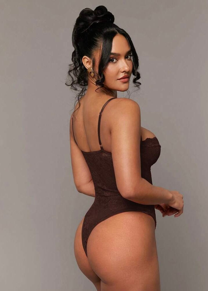 Meet your new fall favorite — the Pinecone Season Lace Bodysuit. This rich brown lace piece brings all the cozy, sultry vibes of the season in one elegant silhouette. Designed with a flattering sweetheart neckline and underwired cups for a perfect fit, it hugs your curves in all the right places while keeping things chic and feminine.